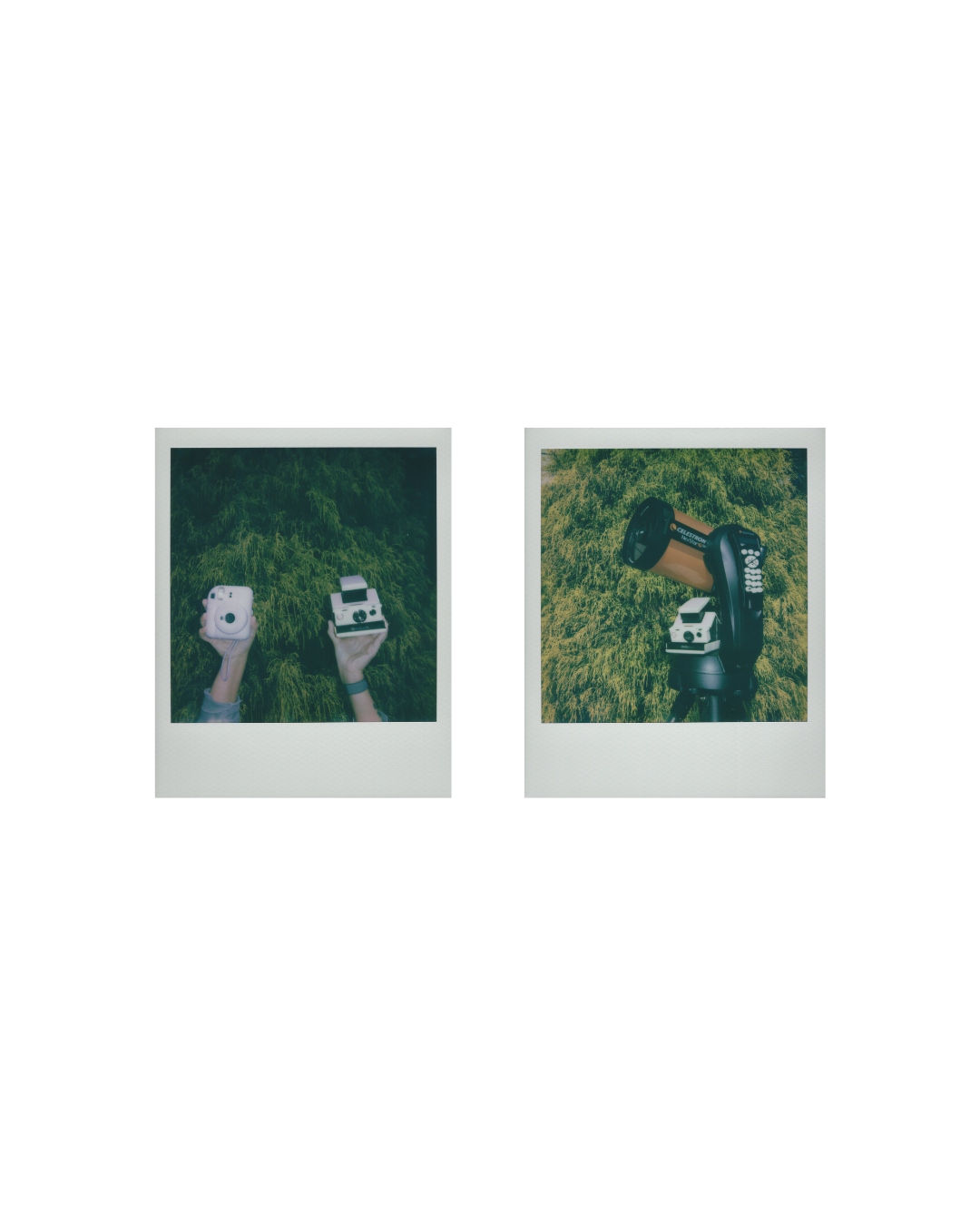 Polaroid and Instax Cameras are used, along with a Celestron Telescope, to create instant film photographs of the Sun and Moon.
